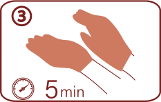 ③そのまま5分くらいおいてからマ スクをはずします。手に残った美容 液はよくなじませてください。